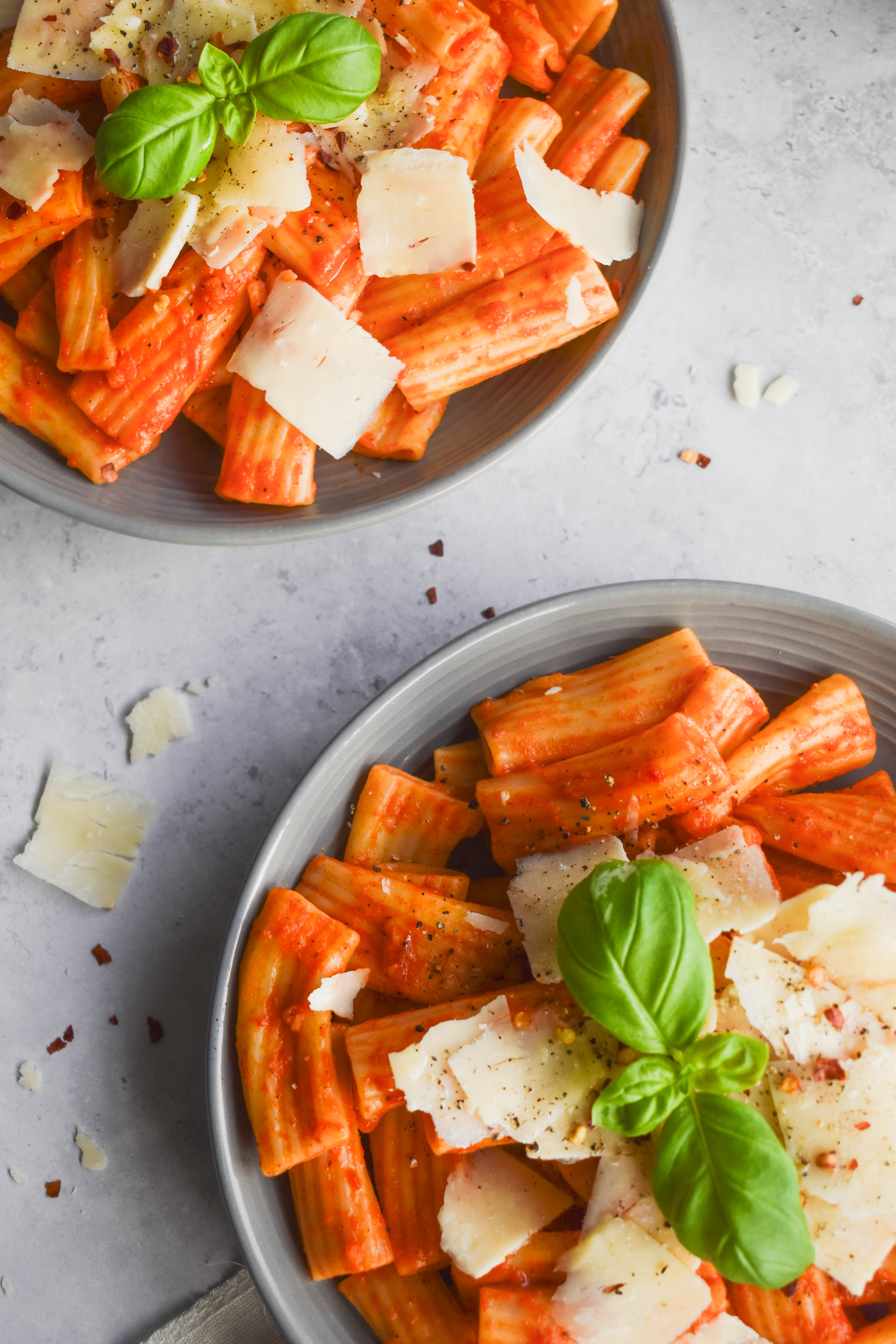 Personally, I loveeee using rigatoni as it holds its shape well and grabs onto the creamy roasted red pepper sauce beautifully, but penne, fusilli or cavatappi also work really well here.